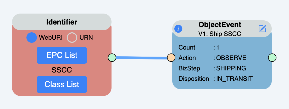 | What | EPC List | A list containing one element: the SSCC of the pallet (instance-levelidentification) | urn:epc:id:sscc:9521141.0123456789 or https://id.gs1.org/00/095211411234567892 |