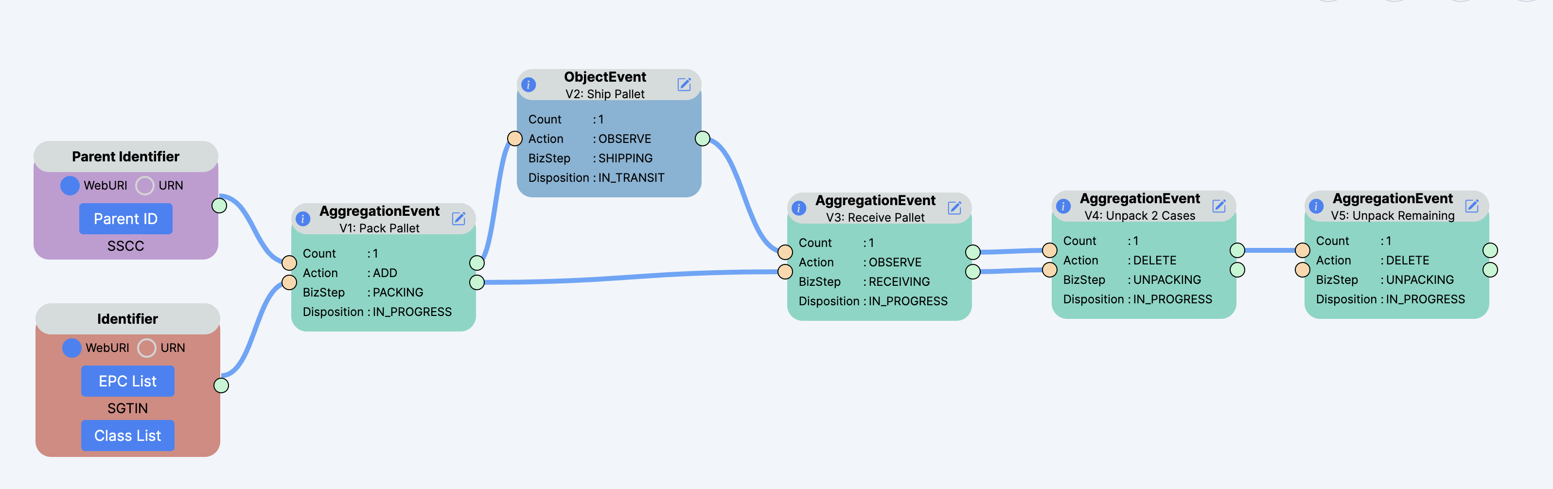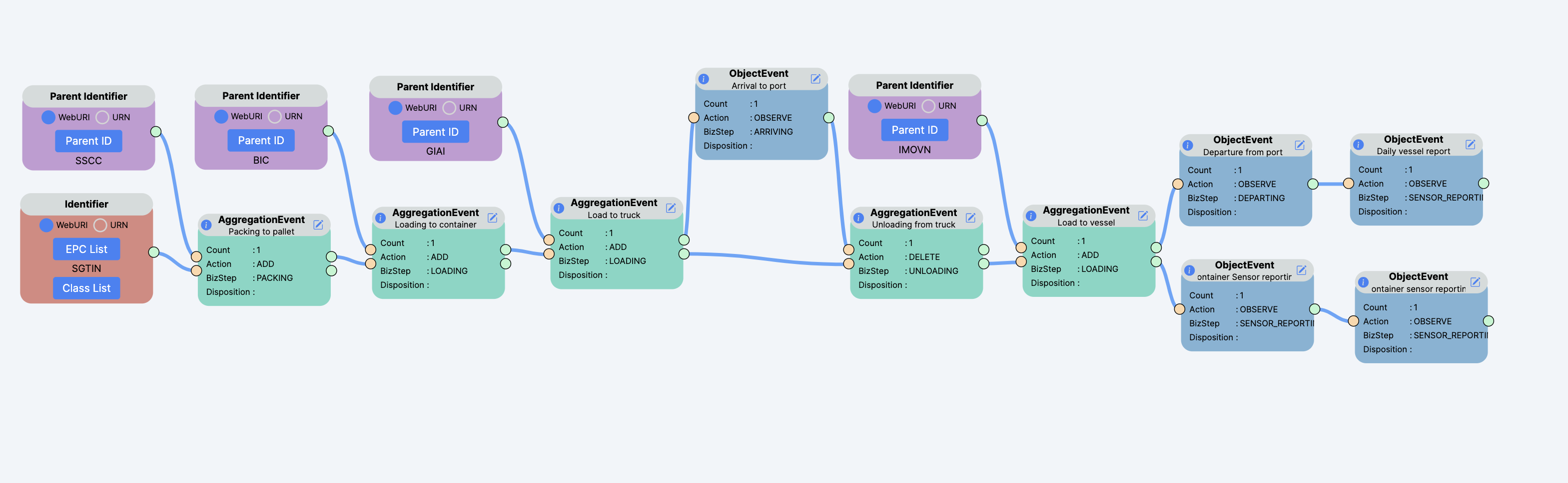 EPCIS implementation guidelines include numerous supply chain examples that illustrate the standard in action. To showcase the usage and generation of events, these supply chain systems have been designed using the OpenEPCIS Test Data Generator https://openepcis.io/docs/test-data-generator/, to demonstrate the usage and generation of the events.